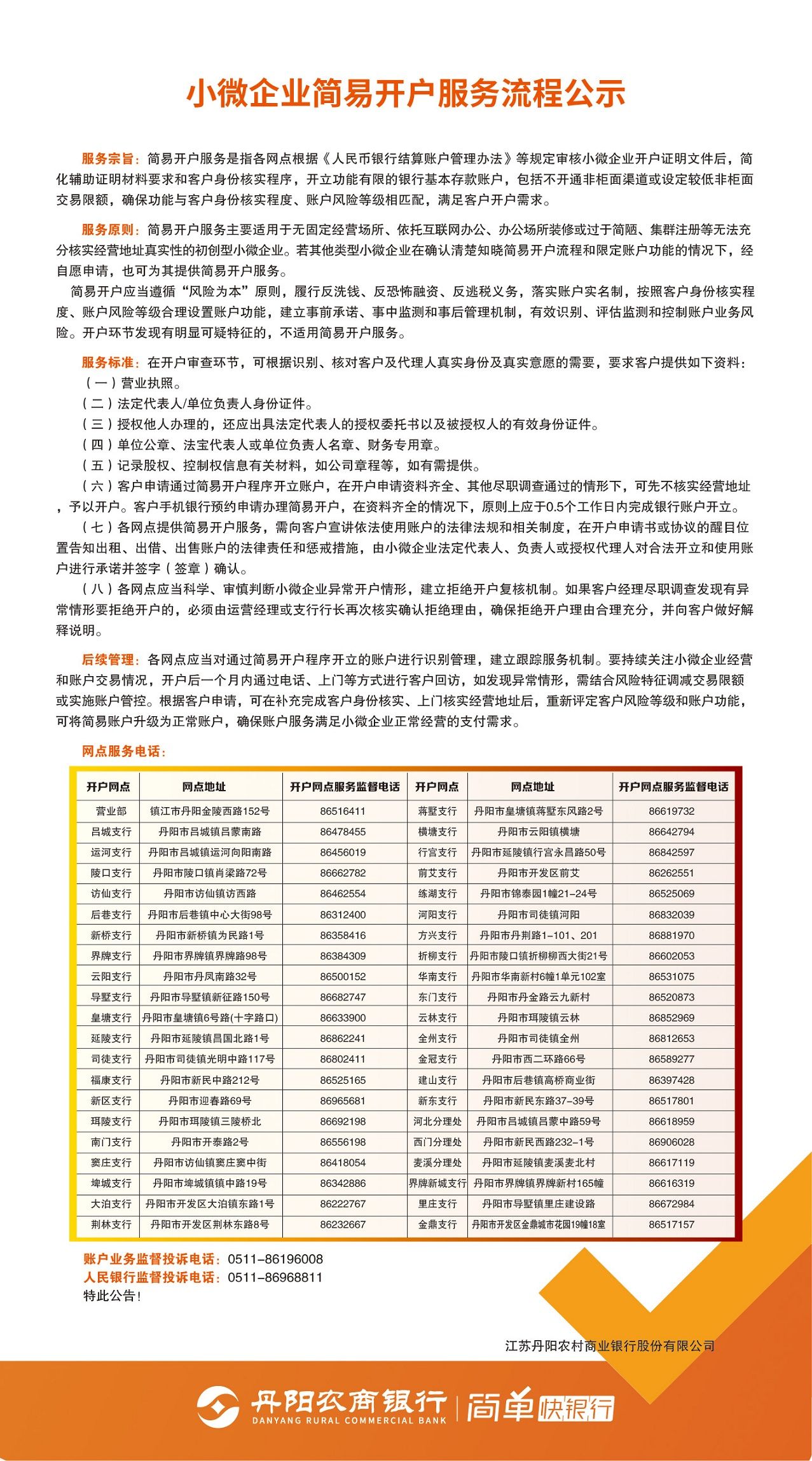 小微企业简易开户服务流程公示