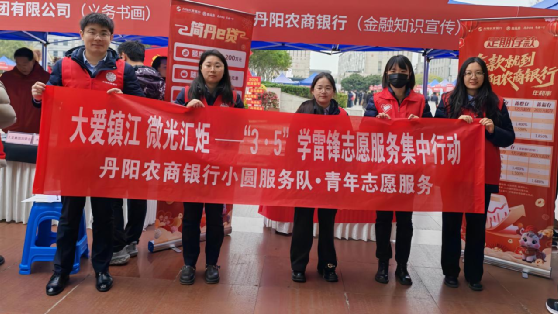 3月5日,镇江市委社会工作部在丹阳市市民广场举办了“大爱镇江 微光汇炬”-2026年镇江市“3·5”学雷锋志愿服务集中行动。丹阳农商银行青年志愿者主动响应号召,积极开展金融知识宣传活动,以实际行动践行雷锋精神,服务广大市民。