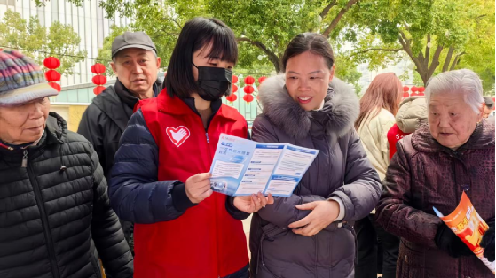 青年志愿者们分发宣传手册,普及金融知识,解答市民日常金融疑问